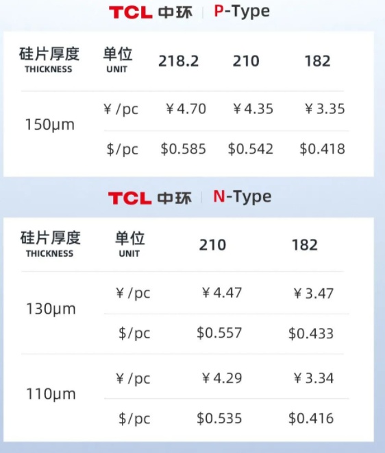 智通财经APP获悉,8月21日,TCL中环(002129.SZ)公示最新硅片价格,与最近一次8月9日调价相比,P型150微米182硅片价格每片涨0.2元,报价3.35元/片;150微米210硅片价格每片涨0.15元,报价4.35元/片;150微米218.2硅片价格每片涨价0.17元,报价4.70元/片。