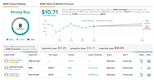 总体而言,根据最近8位分析师的评论,美国资本代理公司获得了华尔街一致的“强烈买入”评级,其中包括6位予以“买入”和2位予以“持有”。平均目标价为10.71美元,这意味着未来一年上涨空间约有13%。