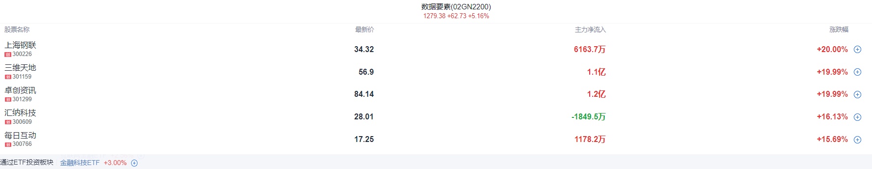 盘面上,数据要素相关产业链表现活跃,数据安全、国资云、数字水印等板块涨幅居前,卓创资讯等多股20%涨停;AI赛道活跃,算力、传媒等方向领涨,鸿博股份再涨停,成为A股AI领域的首只10倍股;中字头个股表现活跃,中国联通大涨超7%。