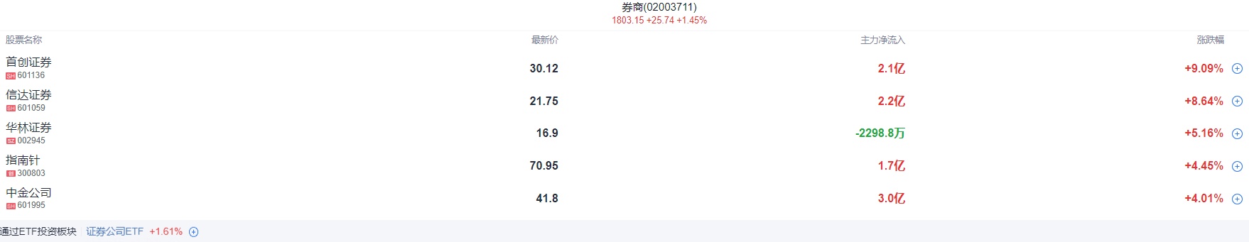 券商、保险等大金融股午后大幅拉升,信达证券逼近涨停,首创证券一度封板再创历史新高,中金公司、华林证券、中国人寿纷纷跟涨。