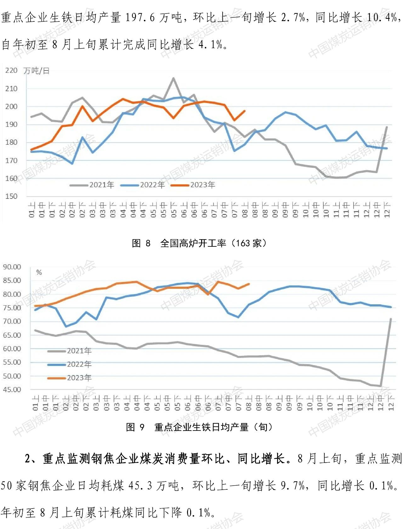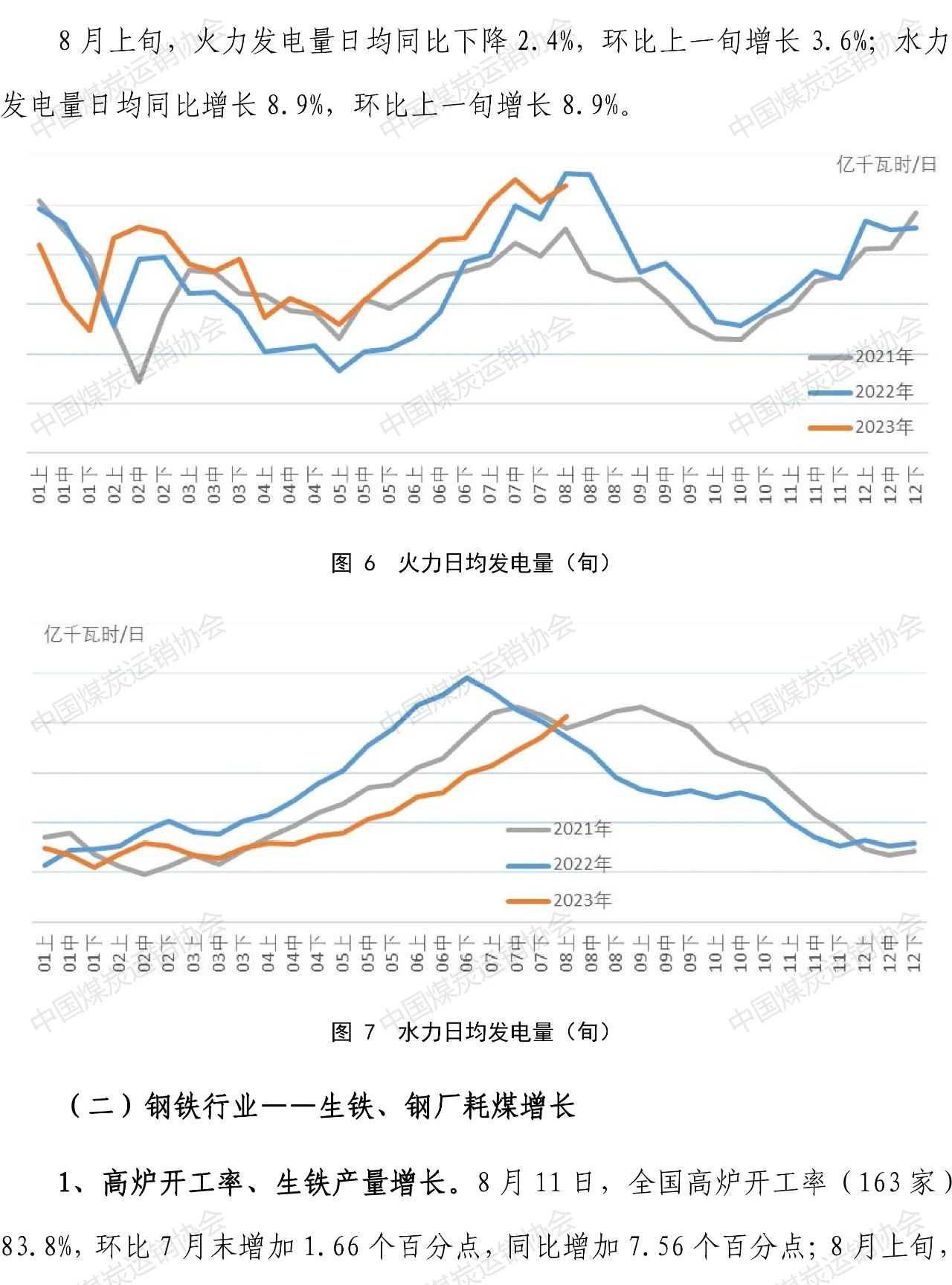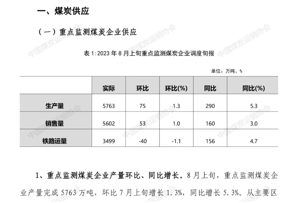智通财经APP获悉,8月22日,中国煤炭运销协会发布煤炭市场调度旬报。8月上旬,煤炭企业加快释放煤炭先进产能、增加煤炭产量,重点监测煤炭企业煤炭产、销、运与去年同期相比均有明显的增长。下游需求分行业看,8月上旬高温天气与降雨交替,火电环比继续增长,但由于来水转好,结束了水电自1月中旬以来的负增长态势,也明显挤占了火电增长空间,火电同比增速由正转负;钢厂高炉开工率增加,生铁产量、重点监测焦钢企业煤炭消费量同步增长。煤炭产地、中转港口、钢焦企业用户煤炭库存量下降。国内外煤炭价格波动调整。