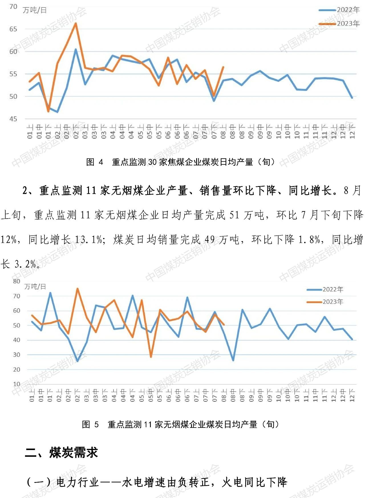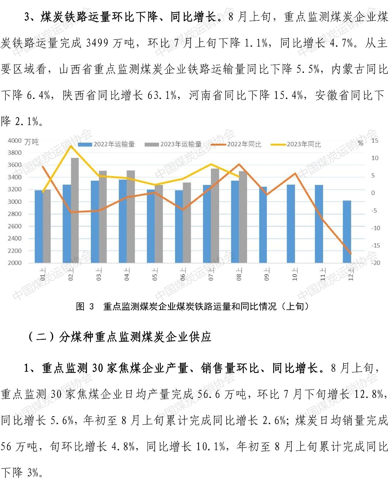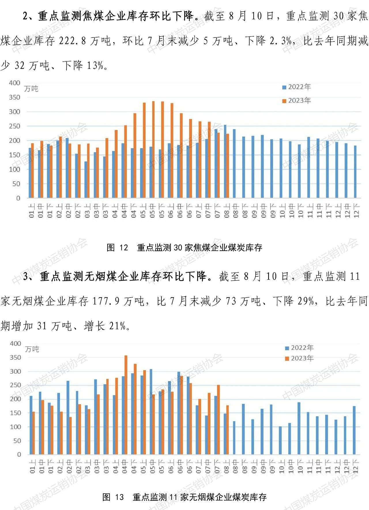 智通财经APP获悉,8月22日,中国煤炭运销协会发布煤炭市场调度旬报。8月上旬,煤炭企业加快释放煤炭先进产能、增加煤炭产量,重点监测煤炭企业煤炭产、销、运与去年同期相比均有明显的增长。下游需求分行业看,8月上旬高温天气与降雨交替,火电环比继续增长,但由于来水转好,结束了水电自1月中旬以来的负增长态势,也明显挤占了火电增长空间,火电同比增速由正转负;钢厂高炉开工率增加,生铁产量、重点监测焦钢企业煤炭消费量同步增长。煤炭产地、中转港口、钢焦企业用户煤炭库存量下降。国内外煤炭价格波动调整。