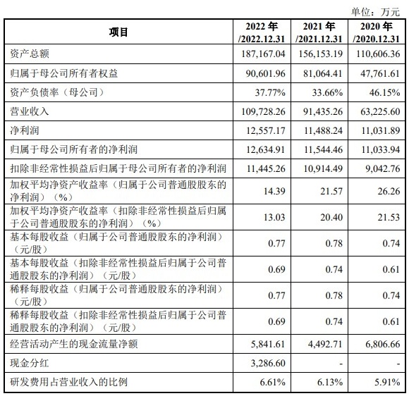 财务方面,于2020年度、2021年度及2022年度,金帝股份实现营业收入分别约为6.32亿元、9.14亿元、10.97亿元。同期,归属于母公司所有者的净利润分别约为1.10亿元、1.15亿元、1.26亿元人民币。