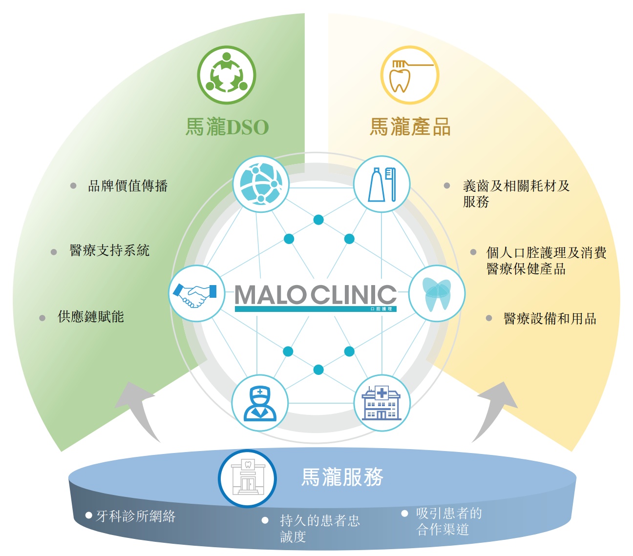 为进一步将公司庞大的患者群变现,自2018年起,公司开始销售符合消费者日常生活需求的联名口腔护理产品,而自2023年起,公司开始开发公司自有品牌下的口腔护理产品以进一步增强患者对公司品牌的黏性。此外,公司亦提供DSO服务,赋能第三方口腔门诊拥有人更有效率地运营其口腔门诊。下图说明了公司的三大收入来源。
