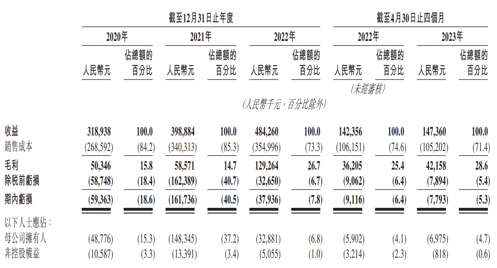 财务方面,于2020年度、2021年度以及2022年12月31日止,公司实现营业收入分别为人民币3.19亿元、3.99亿元、4.84亿元;同期,净利分别为人民币-5936.3万元、-1.62亿元、-3793.6万元。