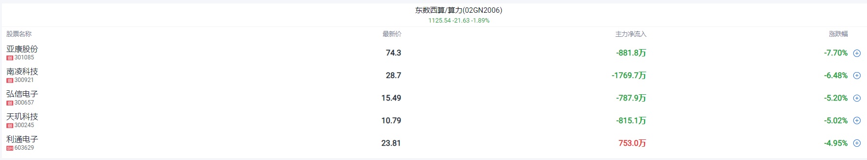 算力板块震荡走低,亚康股份跌超5%,鸿博股份、南凌科技、铜牛信息、美利云、利通电子、浪潮信息等跟跌。