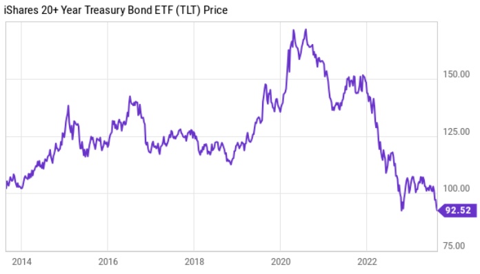 今天,美国通货膨胀率仍远高于目标,公众对货币的信任仍未完全恢复。除此之外,最重要的是,美国政府的预算赤字规模正处于前所未有的水平,愿意购买政府债券的投资者越来越少。惠誉最近下调了美国的信用评级,原因是“治理受到侵蚀”,以及缺乏增税意愿。在遭受通货膨胀的打击之后,市场正在矫正。到目前为止,市场已经抛售了之前发行的低票面利率长期债券。长期美国国债价格跌下悬崖。