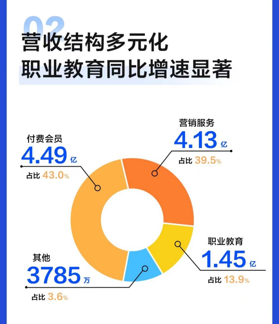 财报显示,知乎四大营收板块中,付费会员收入达到4.49亿元 ,占比43%,营销服务收入达到4.13 亿元,占比39.5%,职业教育收入达到 1.45 亿元,占比13.9%,消费品和图书为主的其他收入达到3790 万元,占比3.6%。知乎营销服务主要由线上广告业务和根植于知乎社区的内容商业化解决方案(以下简称CCS)构成,借助知乎社区的生态优势进行品牌布局和新品推广已越来越受到商业客户认可。