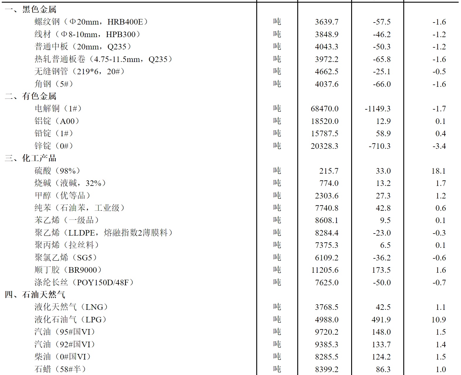 2023年8月中旬流通领域重要生产资料市场价格变动情况