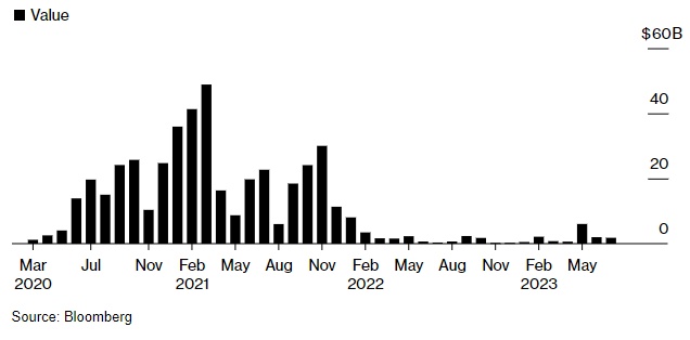 如下图所示,自去年初以来,美国IPO窗口基本关闭。