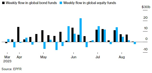 怀疑论者还指出,日本是一个例外。EPFR的数据显示,截至8月16日当周,股票基金录得第10周资金流入。与此同时,在截至8月9日的一周内,债券基金获得了两年来最大的资金流入。