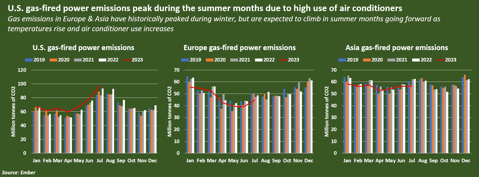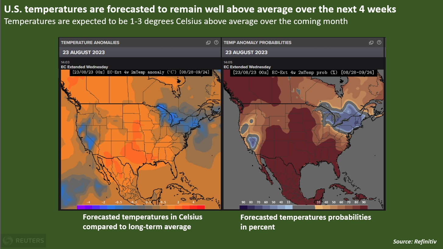 未来几周,美国大部分地区的气温预计将高于长期平均水平。目前的高天然气使用量将至少持续至9月份,这将导致燃气发电二氧化碳排放量进一步攀升。