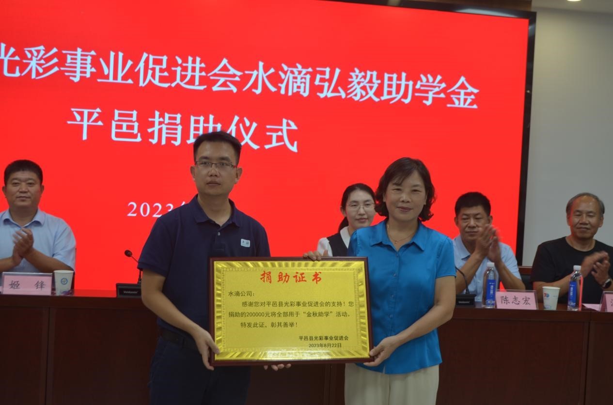 近日,在临沂市委统战部的监督和指导下,水滴公司(WDH.US)与临沂市光彩事业促进会共同设立“水滴弘毅助学金”专项基金,水滴公司决定向临沂市光彩事业促进会5年捐赠100万元,用于帮助临沂市家庭困难、身残志坚、品学兼优的高中毕业生圆梦大学。