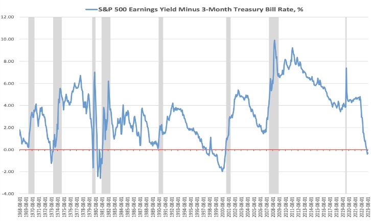 他表示:“当这种情况发生时,股市就会出现重大调整,短期利率也会下降。最大的股市下跌发生在以现金为基础的负ERP加上经济衰退的时候(1973-1975年、1981-82年和2001年)。收益率曲线倒挂和实际货币总量负增长也出现在这些衰退和熊市之前。”