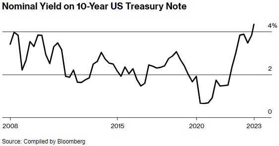 目前联邦预算的前景基本上是肉眼所能看到的前所未有的危机规模的赤字,尽管经济看起来很健康。这种前景让投资者感到不安,基准的10年期美国国债收益率本周攀升至4.3%以上,为2007年以来的最高水平就是明证。其他借贷成本也在同步上升:30年期固定抵押贷款的平均利率20多年来首次飙升至7%以上。