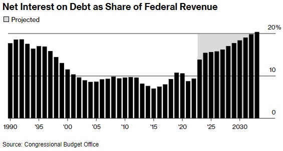 债务净利息占联邦收入的份额