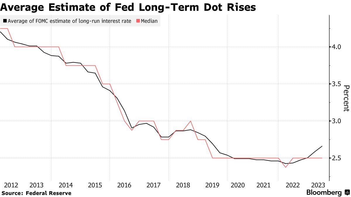 自2019年以来,美联储政策制定者对长期政策利率的中位数预期为2.5%——基本上是他们的中性指标——低于8年前的3.5%。Yeoh表示,推高中性利率可能会加剧有关趋势通胀率目前是否更高,以及投资者是否应该要求更高的溢价来购买较长期美债,即不断推高10年期美债收益率的讨论话题。