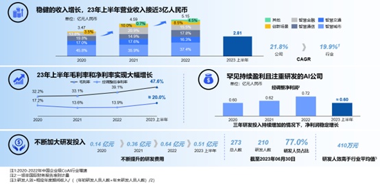 公司已经连续多年实现净利润和收入双增长。过去三年,公司营收规模从2020年的3.5亿元提升至2022年的5.15亿元,年均复合增速21.8%高于行业同期增速,2023年上半年营收接近3亿元。公司2022年经调整后的净利润为人民币7,169.3万元,同比保持稳健增长,过去三年的平均净利润约为6,400万元,2023年上半年净利润同比去年同期实现翻倍增长,上半年净利率实现大幅增长。