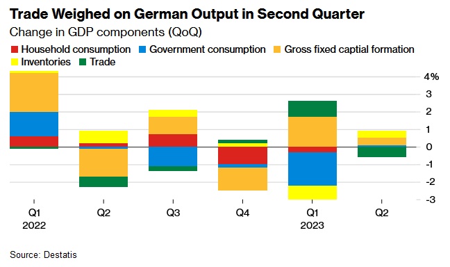 德国央行本周早些时候表示,由于高利率和全球需求疲软给制造业带来压力,德国经济在第三季度可能也会停滞不前,但强劲的劳动力市场和工资增长、以及通胀放缓将支撑消费者支出的复苏。