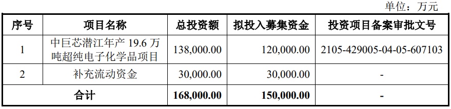 据了解,中巨芯募集资金扣除发行费用后拟用于以下列项目:
