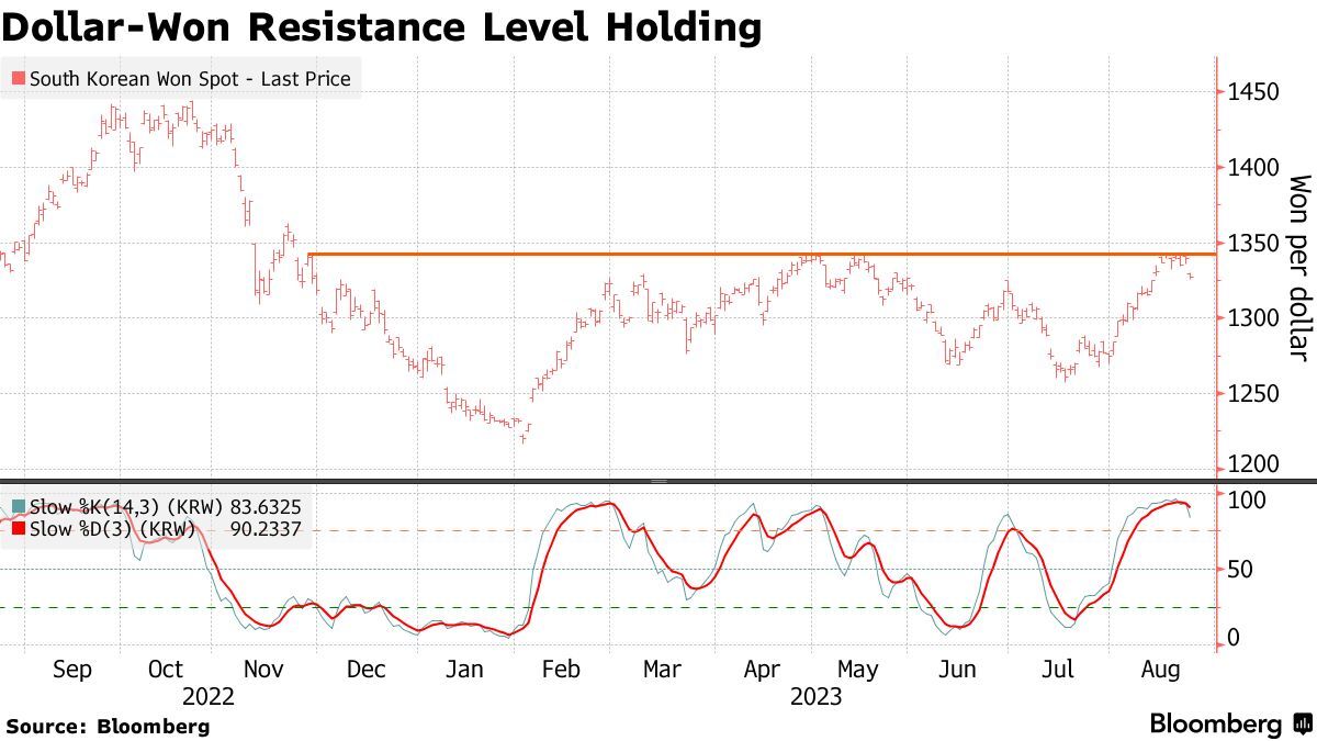 看涨韩元的交易员已经有了可靠的积极迹象。上周,美元兑韩元汇率未能突破1343的阻力位,而根据衡量动能的技术指标,韩元目前正处于超卖区域。不过,韩元仍面临着全球经济增长放缓的挑战。