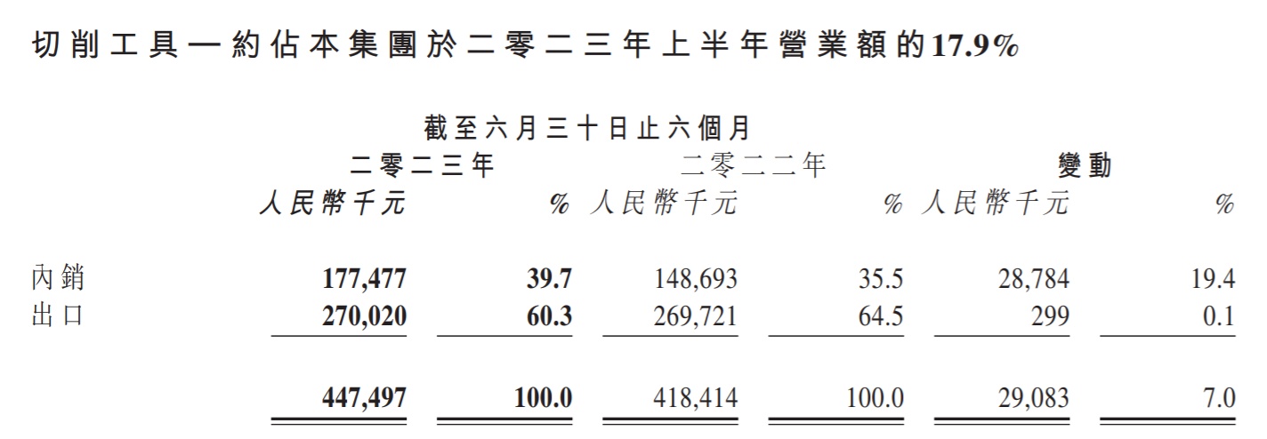 这得益于内销市场中粉末冶金高速钢刀具以及硬质合金刀具等高端产品占比提升,带动了平均售价的上涨,这使切削工具内销收入增长19.4%至1.77亿元。而出口方面由于仍处去库存尾声阶段销量有所下滑,但平均售价提升,这使出口收入保持稳定。