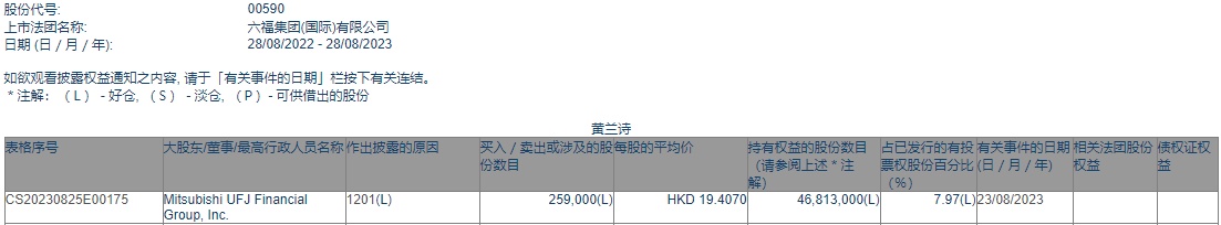 智通财经APP获悉,香港联交所最新资料显示,8月23日,Mitsubishi UFJ Financial Group,