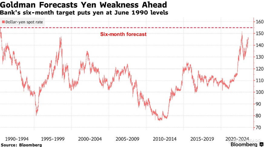 智通财经APP获悉,高盛表示,如果日本央行坚持鸽派立场,日元将跌至30多年前的水平。在接下来的6个月里,日元兑美元的汇率预计将跌至155日元兑1美元,这是自1990年6月以来的最低水平。高盛此前预计日元汇率为135日元兑1美元。