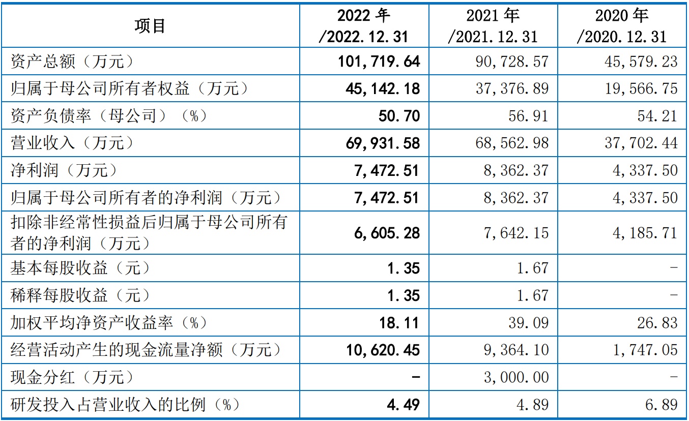 财务方面,2020年、2021年及2022年,龙腾电子实现营业收入约为3.77亿元、6.86亿元及6.99亿元;同期,净利润约为4337.5万元、8362.37万元及7472.51万元。