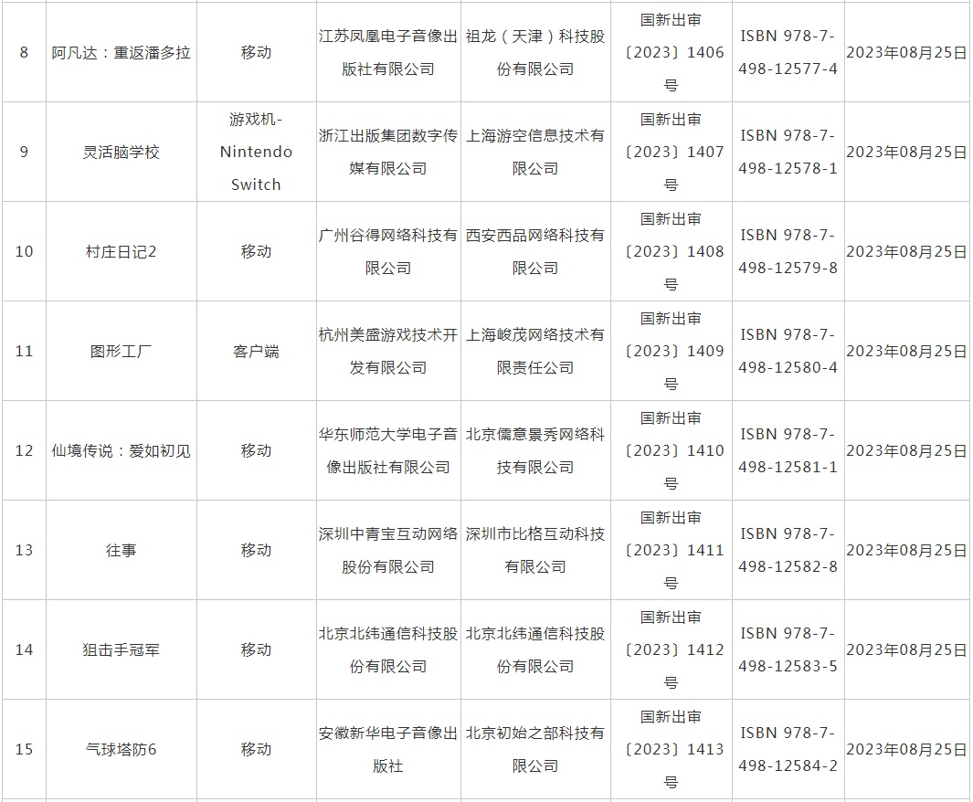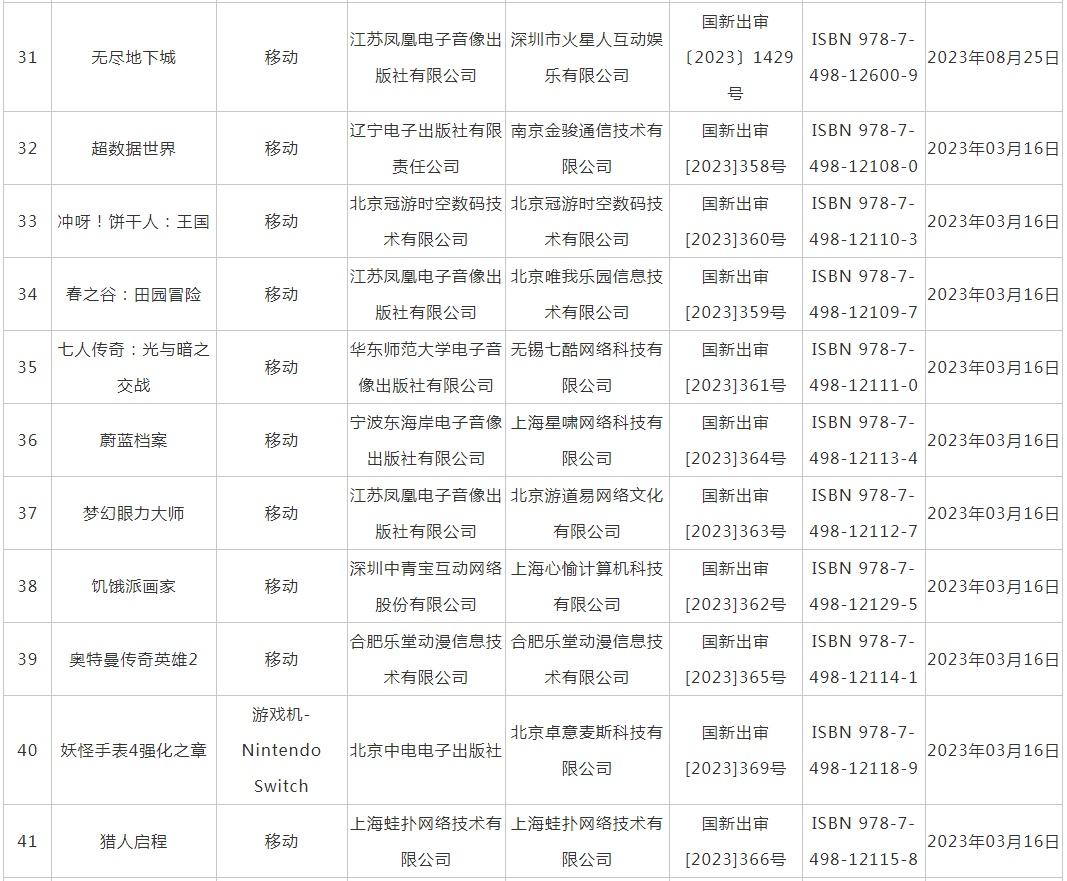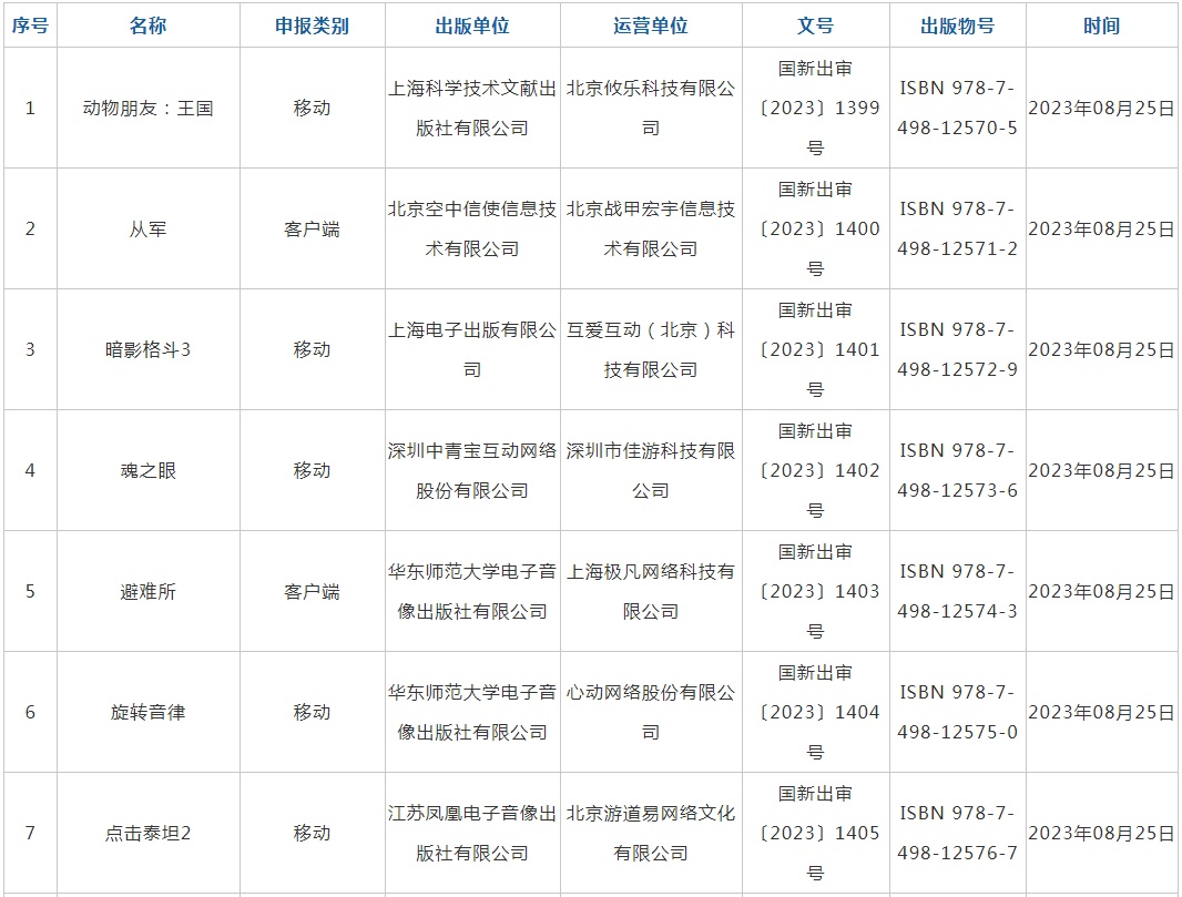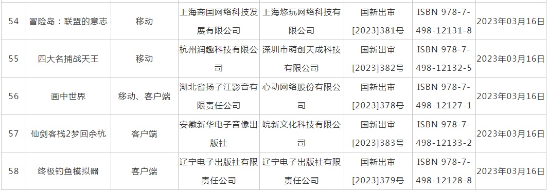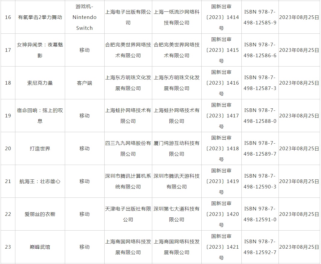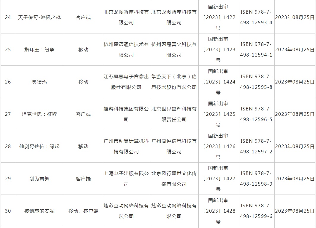 智通财经APP获悉,8月29日,国家新闻出版署发布2023年进口网络游戏审批信息,共58款游戏获批。网易(09999)旗下《指环王:纷争》、《劲舞团:全民派对》;腾讯(00700)旗下的《航海王:壮志雄心》;中青宝(300052.SZ)旗下的《魂之眼》、《往事》、《饥饿派画家》等在列。