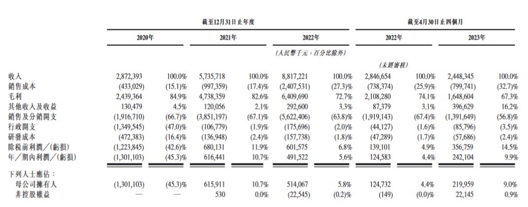财务方面,于2020年度、2021年度以及2022年12月31日止,公司实现营业收入分别为人民币28.72亿元、57.36亿元、88.17亿元;同期,净利分别为人民币-13.01亿元、6.16亿元、4.92亿元。