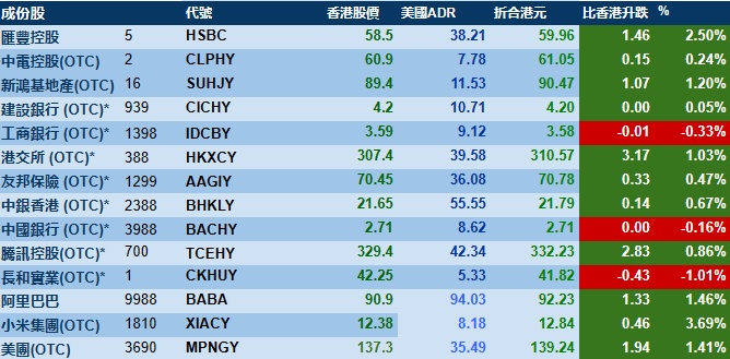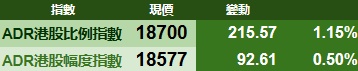 智通财经APP获悉,周二美股三大指数集体收涨,港股ADR指数上涨,按比例计算,收报18700点,较香港收市涨215.57点或1.15%。