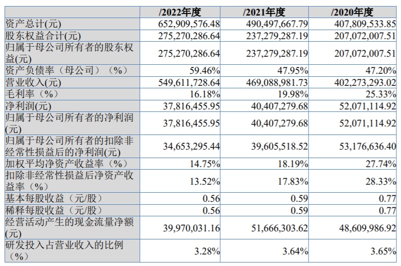 财务方面,于2020年、2021年、2022年,力王股份实现营业收入分别约为4.02亿元、4.69亿元、5.50亿元,其中,公司实现净利润分别约为5207.11万元、4040.73万元、3781.65万元。