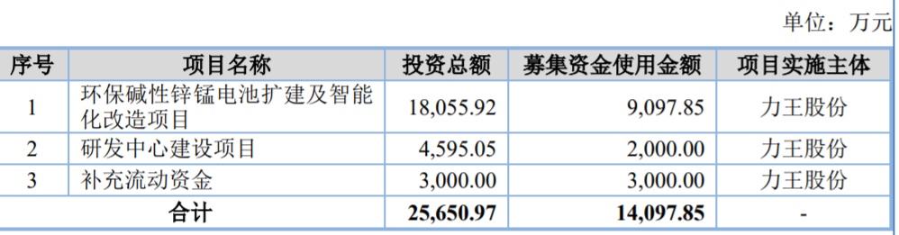 力王股份此次募集资金扣除发行费用后的净额拟全部用于如下用途: