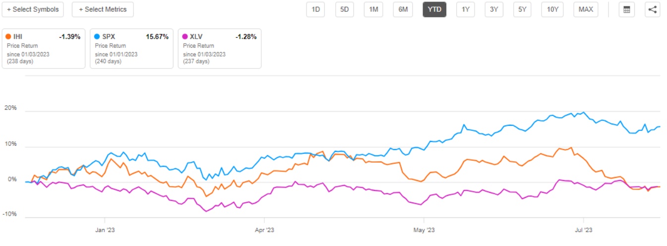 智通财经APP获悉,摩根大通在最近一份基于历史趋势的研究报告中表示,iShares美国医疗器械ETF (IHI.US)今年落后于大盘和医疗保健行业,但尽管美股医疗科技板块今年以来的表现明显落后,仍应买入该板块的股票。