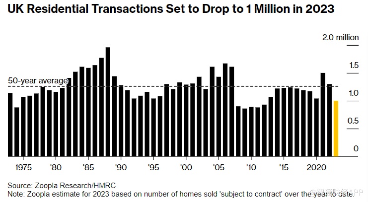 智通财经APP获悉,英国房屋销量今年可能降至2012年以来的最低水平,原因是居高不下的抵押贷款利率打压了房地产市场。根据房地产网站Zoopla的数据,英国今年住宅交易量预计将降至100万套,较2022年下降20%以上。Zoopla还预计今年抵押贷款销售将下降28%。