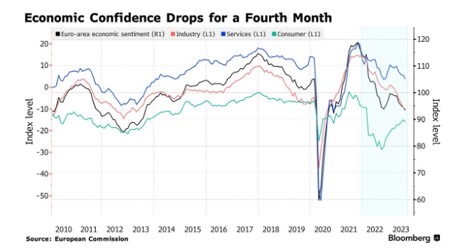 智通财经APP获悉,本月欧元区经济信心放缓幅度超预期,这进一步给该地区的前景蒙上阴影。数据显示,欧盟委员会公布的欧元区8月经济景气指数从7月份的94.5下滑至93.3,这是连续第四个月下降,也低于预期中值的93.7。