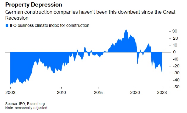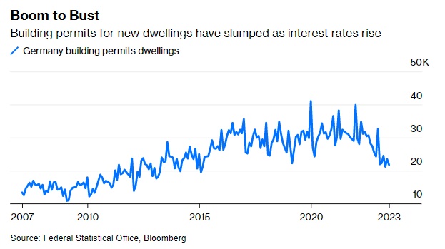 智通财经APP了解到,在廉价融资推动了长达十年的房地产繁荣之后,德国新建筑和抵押贷款需求正在崩溃,而住宅和办公项目开发商正成群结队地申请破产。