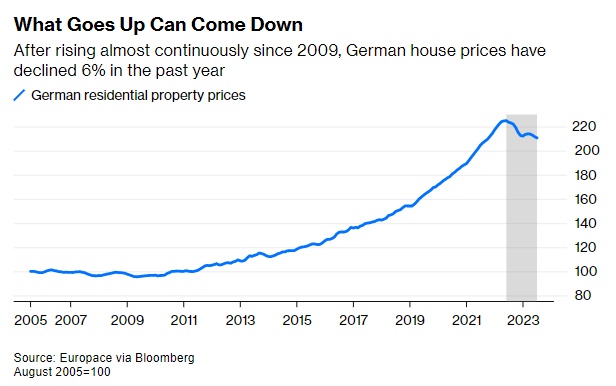 因此,大多数德国人并没有从房地产繁荣中受益。尽管住宅价格比2022年6月的峰值下降了6.4%(在此期间,整体消费者价格上涨了7%),但交易量却大幅下降。其结果是,更多的人转向成本不断上升的租赁市场。