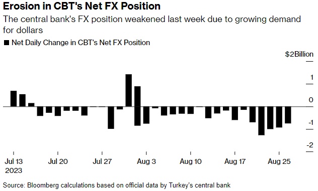 由于对美元的需求不断增长,上周土耳其央行的外汇头寸有所减弱