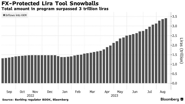 这种受外汇保护的存款工具最初被视为里拉的救星,目前已吸引了逾1200亿美元的资金流入,并成为政府昂贵的工具。埃尔坎和财政部长Mehmet Simsek都认为这是货币政策正常化的障碍。