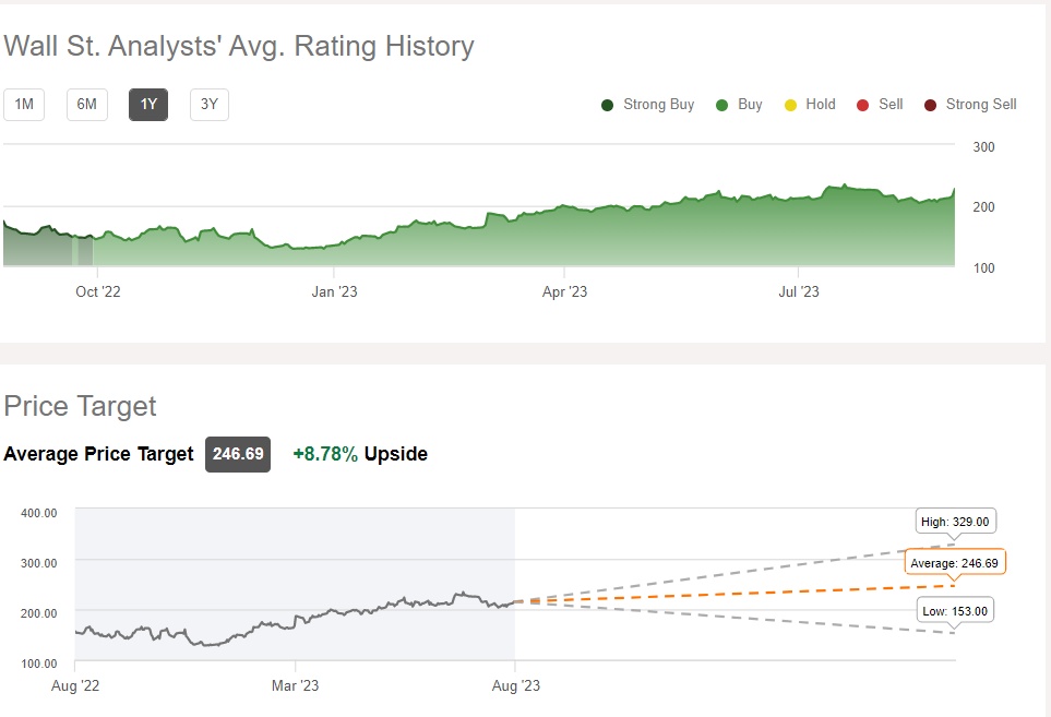 总体而言,Seeking Alpha汇编华尔街分析师共识评级以及目标价,华尔街分析师们对赛富时的共识评级为“买入”,评级目标价为246.69美元,最高目标价达329美元。