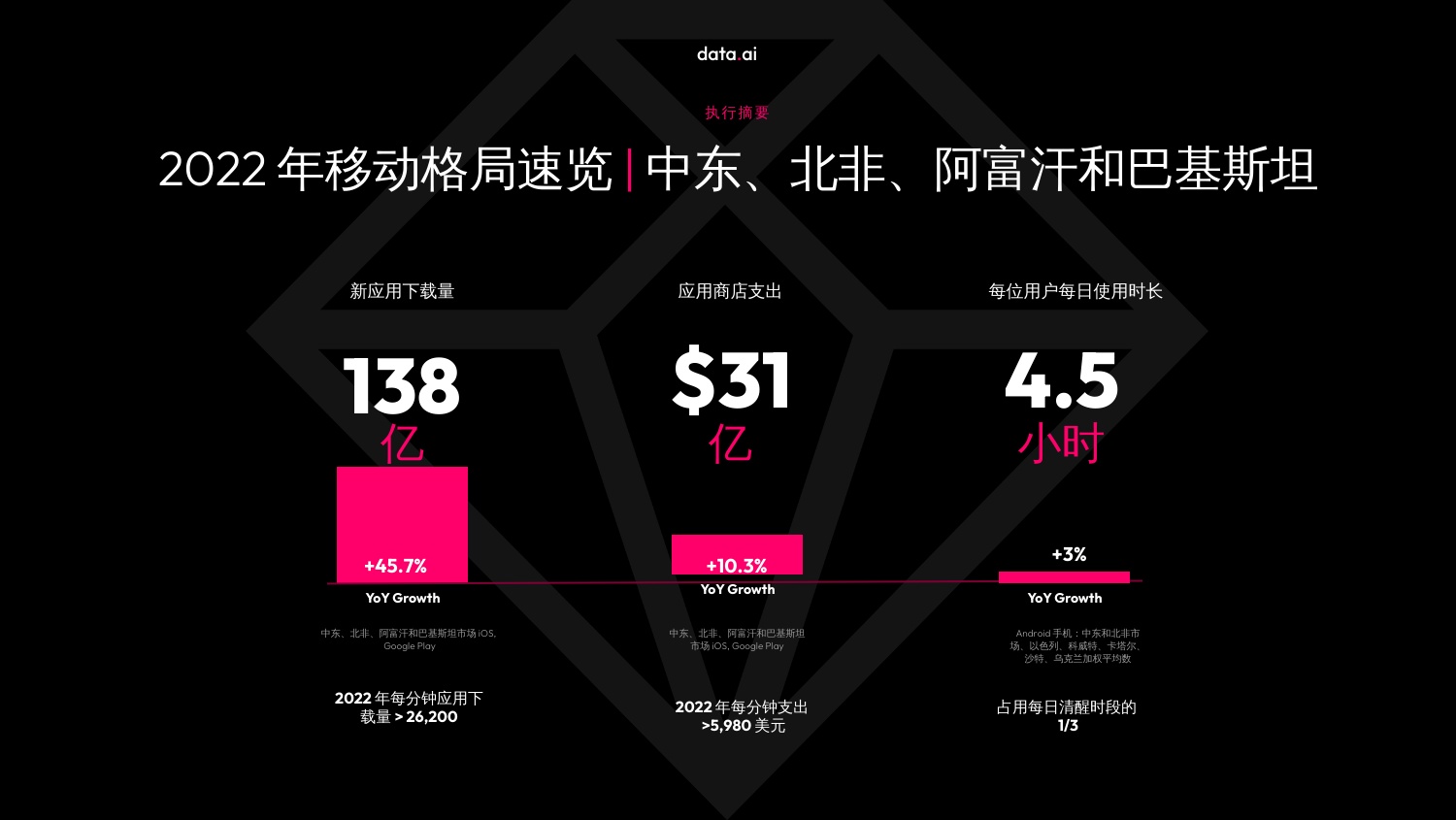 智通财经APP获悉,data.ai发文称,2022年是中东和北非地区移动领域具有里程碑意义的一年。该地区的消费者支出、下载量和用户使用时长都达到了新的高度,并超过了全球的增长率。2023年上半年,仅中东地区整体应用支出便达到21亿美元,同比增长15%。