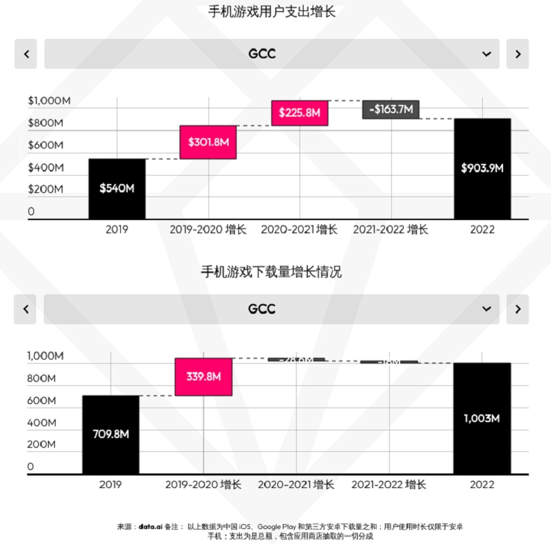 值得一提的是,中东手游市场在经历2022年下半年的增长滞缓之后,于2023年上半年展示出强力的反弹趋势。2023年上半年的游戏消费支出甚至反超2022年上半年水平,达到8.7亿美元,增长幅度为3.5%。