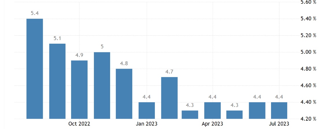 由于劳动力市场依然吃紧,工资增长依然强劲,不过增长速度较年初有所放缓。平均时薪预计在7月环比增长0.4%之后,8月将环比增长0.3%,同比工资涨幅可能达到4.4%,与7月份持平。