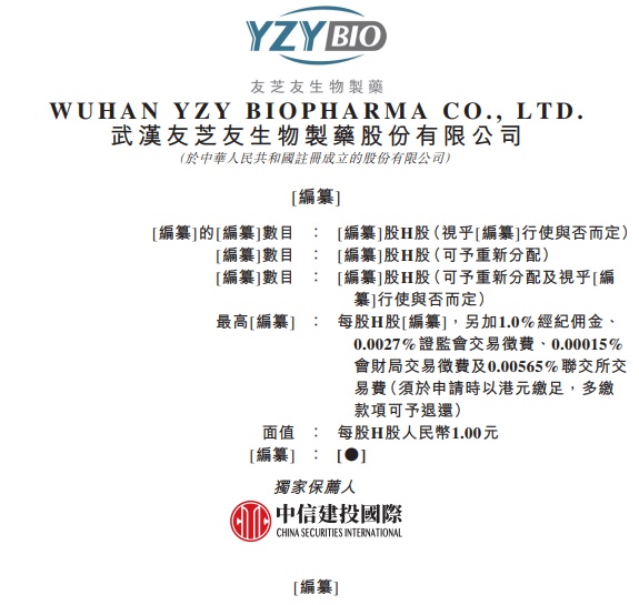 智通财经APP获悉,据港交所9月1日披露,Wuhan YZY Biopharma Co.,LTD.(武汉友芝友生物制药股份有限公司) 过港交所主板上市聆讯,中信建投国际为其独家保荐人。