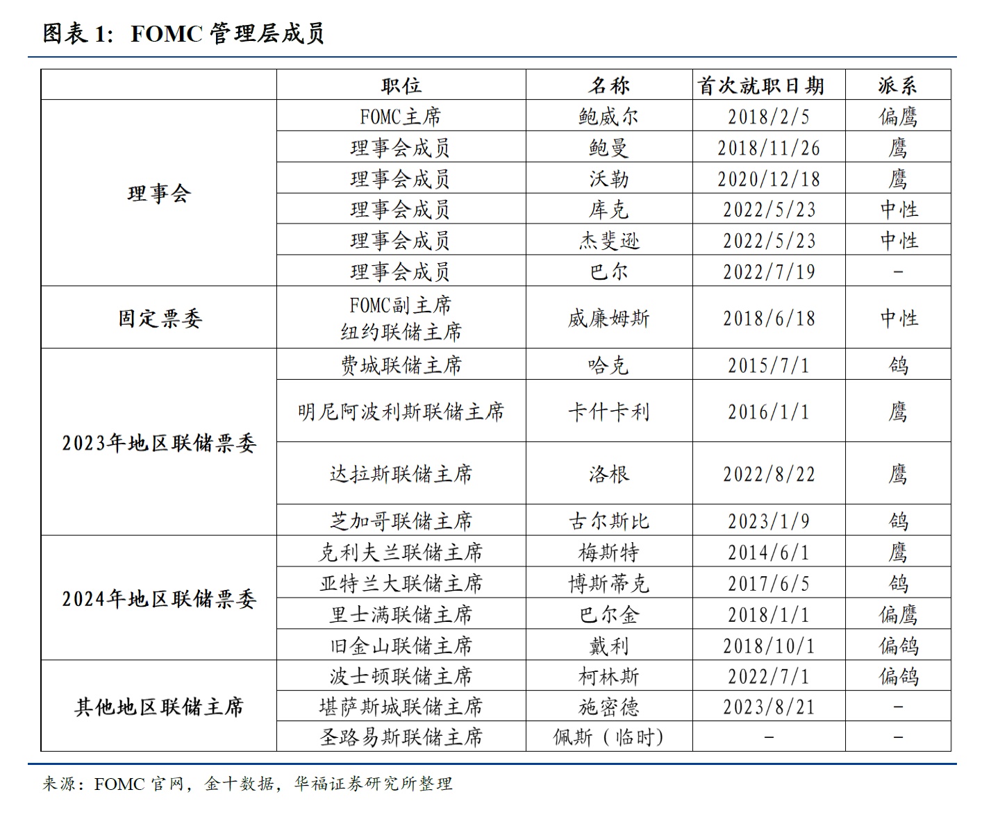 一、本月聚焦:美联储票委派系解析
