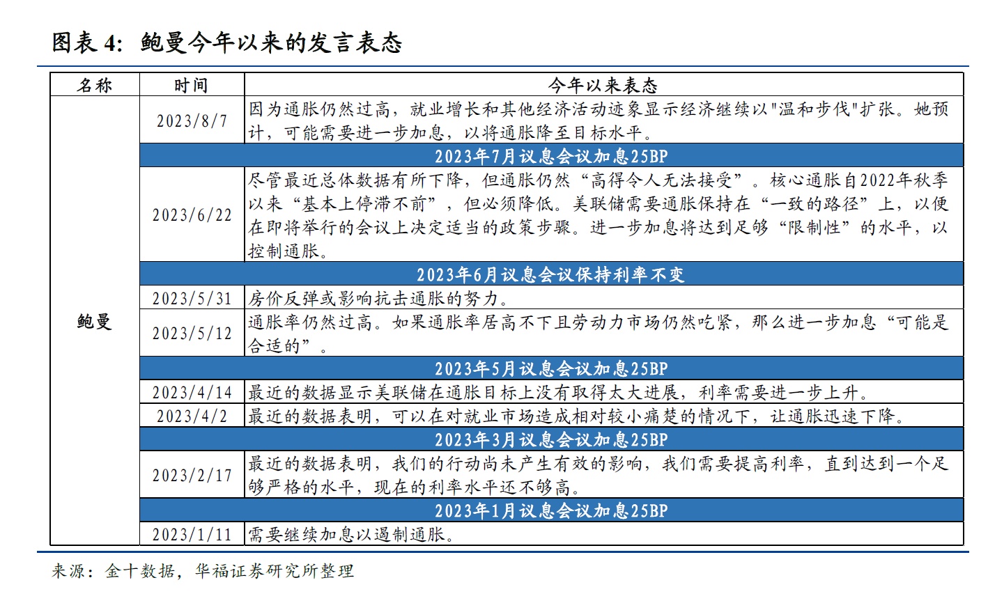 鲍曼于2018年11月就任美联储理事会成员,在本轮加息周期中表现为鹰派。