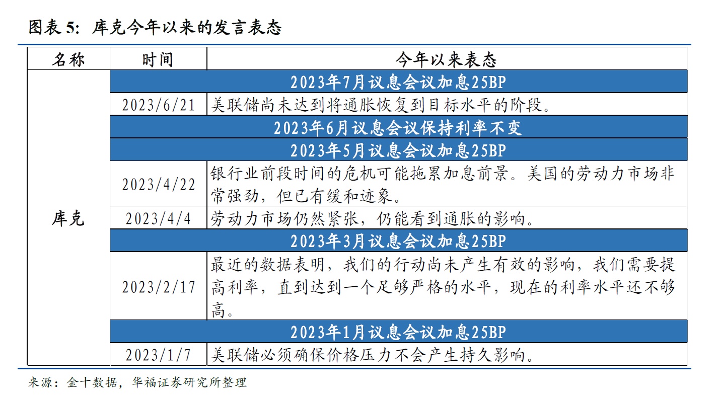 库克和杰斐逊都于2022年5月就任美联储理事会成员,在本轮加息周期中表现偏中性。