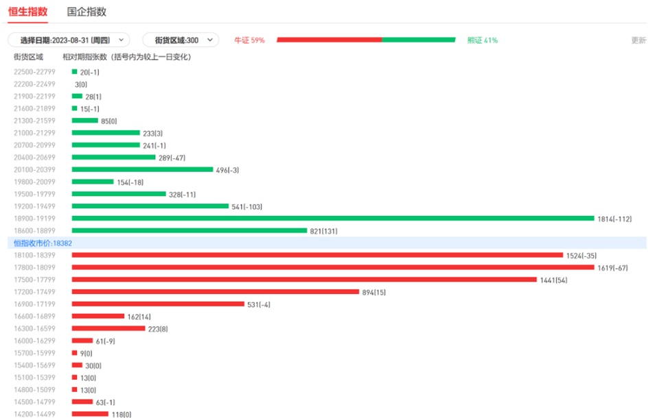 从恒生指数牛熊街货分布情况看,18382点位置,牛熊证密集区靠近中轴,港股在20000点下方蓄势。9月3日,香港财政司司长陈茂波在“司长随笔”中透露,香港新近成立的“促进股票市场流动性专责小组”近期将召开首次会议。香港股票市场流动性再成舆论关注焦点。恒生指数本周看涨。